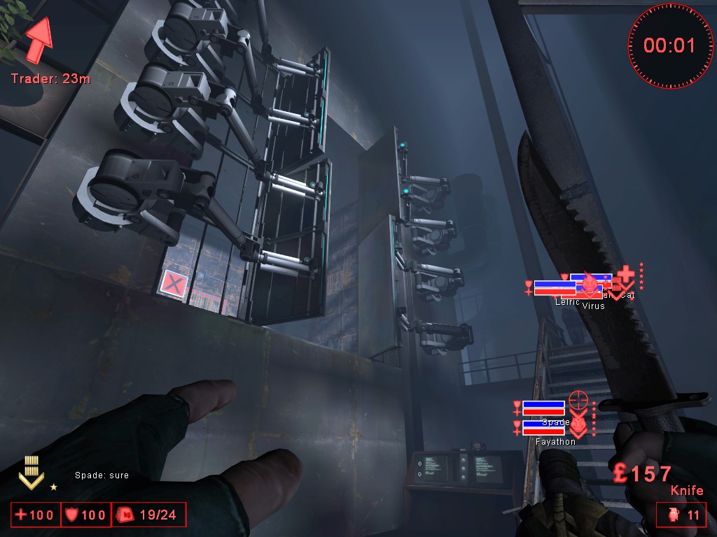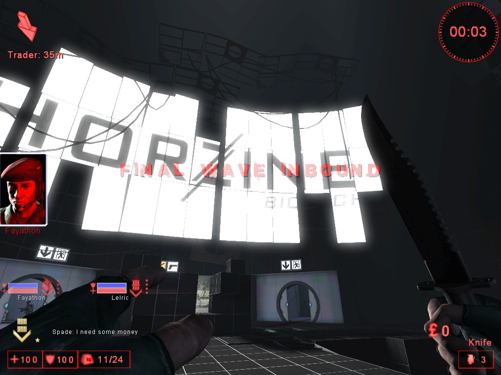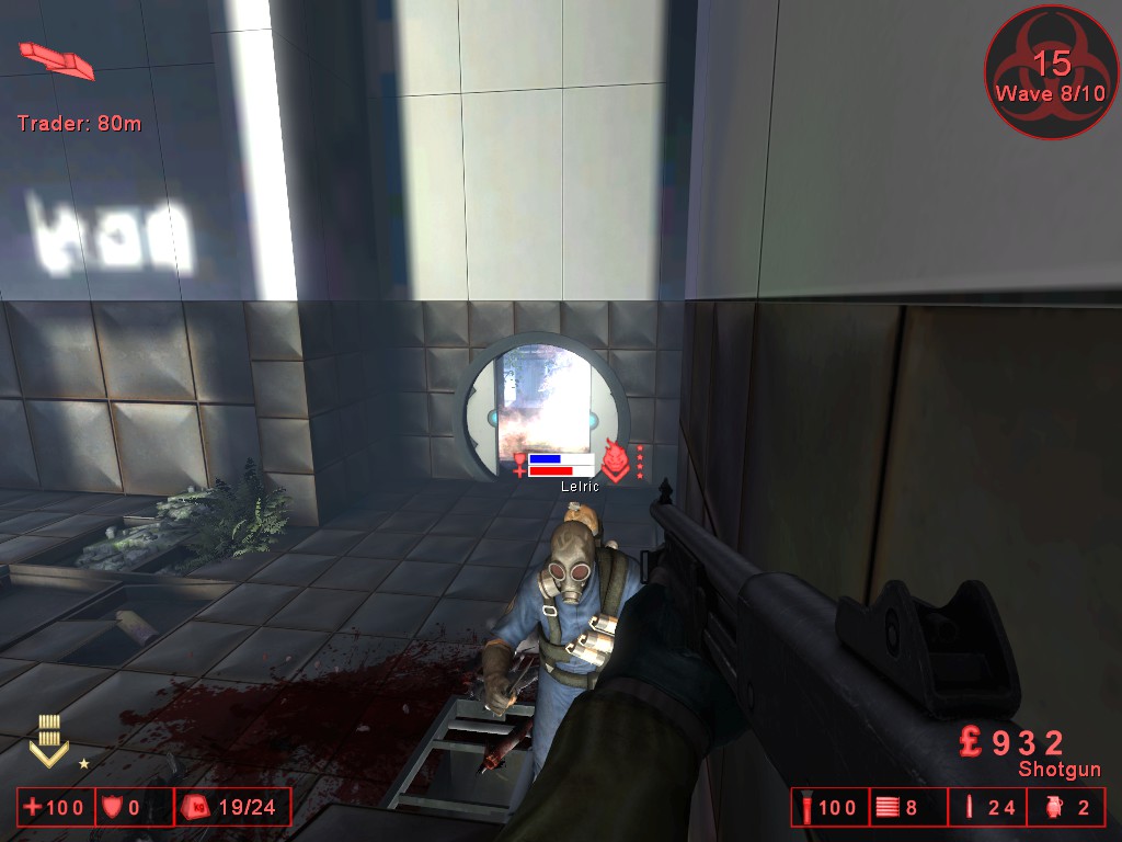 Here, a Skrake (a very tough slow mutant with a chainsaw for a hand) has just finished killing one of my teammates in a portalgun testing chamber. I was already dead. Thanks, Skrake!
